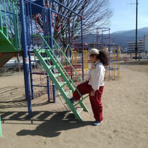 遊具で遊んでる子
