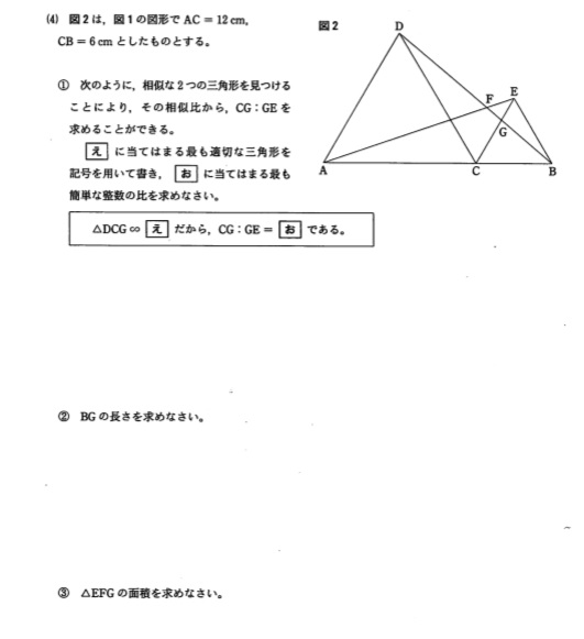 解答【1】60【2】略【3】①C,F②角BCE【4】①え△BEG  お2:1 ② 2√7 ③6√3/7